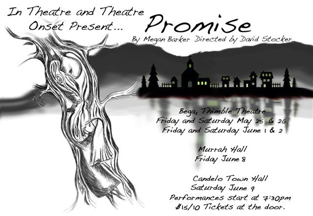 Promise opens at the Thimble Theatre , Bega High School on Friday 25th May, with performances on Saturday 26th May, and Friday 1st and Saturday 2nd June. The show then travels for one night only to the Murrah Hall on Friday 8th June and completes its season at the Candelo Town Hall on Saturday 9th June. All shows start at 7:30. Tickets $15/$10 and are available at the door. Recommended for 14 years and above.