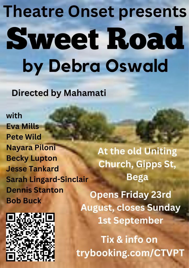 Theatre Onset’s next fabulous production will be “Sweet Road” by Australian playwright Debra Oswald and will be performed at the old Uniting Church in Bega from Friday 23 August to Sunday 1 September.