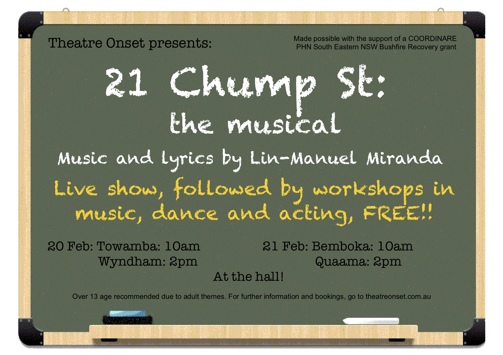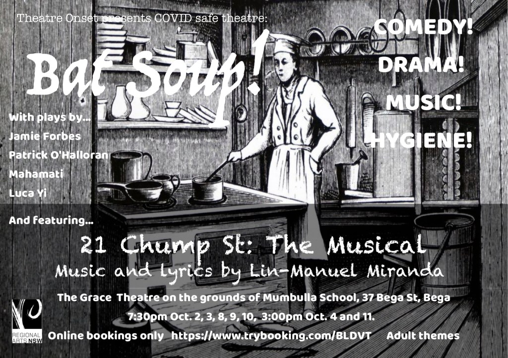March 2021Rehearsing on the oval at Towamba, Chump Street mini-tour 2021Towamba.pre-show Quaama.Bemboka. Wyndham.Bat Soup (2020) – 21 Chump St rehearsalsBat Soup (2020) – Simulacra – Jamie Forbes, Mika Appleton. Pixie Perry-BrittonBat Soup (2020) – 21 Chump Street – Ben Pettit, Lochlann O’Duibhir, Jayden Rafferty, Juliet FitzmauriceBat Soup – 21 Chump Street – Aria Little, Jamie ForbesChump St – Luca YiBat Soup (2020) – Pitch Meeting – Juliet Fitzmaurice, Zosha Fitzmaurice, Aria Little, Jayden Rafferty, Ben Pettit, Lochlann O’Duibhir, Luca YiBat Soup (2020) – The High Jeans – Jake Hansen, Hunter Watts, Candy McVeity, Erik Rjinberg, Monte McVeity. Myoung Jae Yi.21 Chump StChump and Pitch casts with director Amber LittleBat Soup (2020) – 15 Minute Monologue – Kush BourkeBat Soup (2020) – Out There – Elizabeth BrennanBat Soup (2020) Virus and Them – They Said We’d Never Make ItBat Soup (2020) – Park Bench – Zosha Fitzmaurice, Pippi Watt-MeekBat Soup (2020) – Virus and Them – Rebecca Lupton, James CookOf Mice and Men (2018)Of Mice and Men (2018)Of Mice and Men (2018)Of Mice and Men (2018)Of Mice and Men (2018)Of Mice and Men (2018)Of Mice and Men (2018)Of Mice and Men (2018)Of Mice and Men (2018)Of Mice and Men (2018)Of Mice and Men (2018)Of Mice and Men (2018)Of Mice and Men (2018)Of Mice and Men (2018)Of Mice and Men (2018)Of Mice and Men (2018)Of Mice and Men (2018)Of Mice and Men (2018)Of Mice and Men (2018)Of Mice and Men (2018)Of Mice and Men (2018)Of Mice and Men (2018)John Fitzmaurice (George), Indigo Walker (Curley’s wife), Peter Byrne (Whit), Robert Buck (Candy), Heidi Crumb (Candy’s dog), Karl Auer (Carlson), Warren Foster (Crooks), James Cook (The Boss), Jamie Forbes (Lennie), Ethan Dack (Curly), Malcolm Oastler (Slim). Of Mice and Men (2018).and Jamie Forbes as Lennie – Of Mice and Men (2018)Slim (Malcolm Oastler), Curly (Ethan Dack), George (John Fitzmaurice) and The Boss (James Cook) — Of Mice and Men (2018)God of Carnage — happy audience folk (2017)God of Carnage (2017)God of Carnage — happy audience folk (2017)God of Carnage (2017)God of Carnage (2017)God of Carnage (2017)God of Carnage (2017)God of Carnage (2017)God of Carnage (2017)God of Carnage (2017)God of Carnage (2017)God of Carnage (2017)God of Carnage (2017)God of Carnage — happy audience folk (2017)God of Carnage (2017)God of Carnage (2017)God of Carnage (2017)God of Carnage (2017)God of Carnage — happy audience folk (2017)God of Carnage (2017)